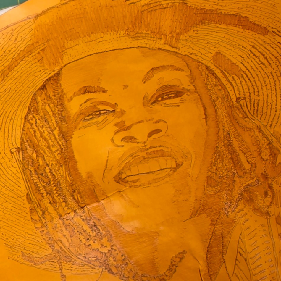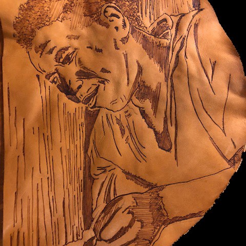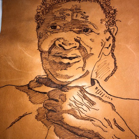 These are some of my featured leather burning/pyrography portraits.