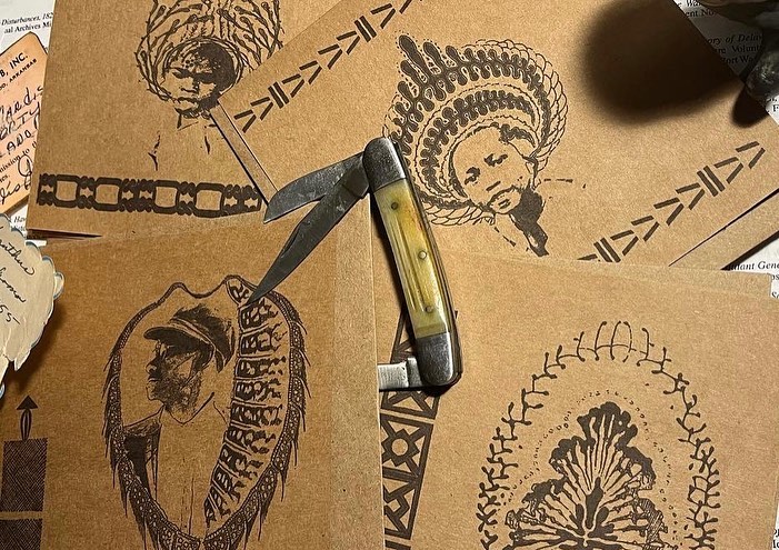 16 Blank Note Cards for Men bearing the original images created by Artist, Jas Mardis. There will be four of each image and envelopes are included. This is a brown card stock and envelope. Includes shipping