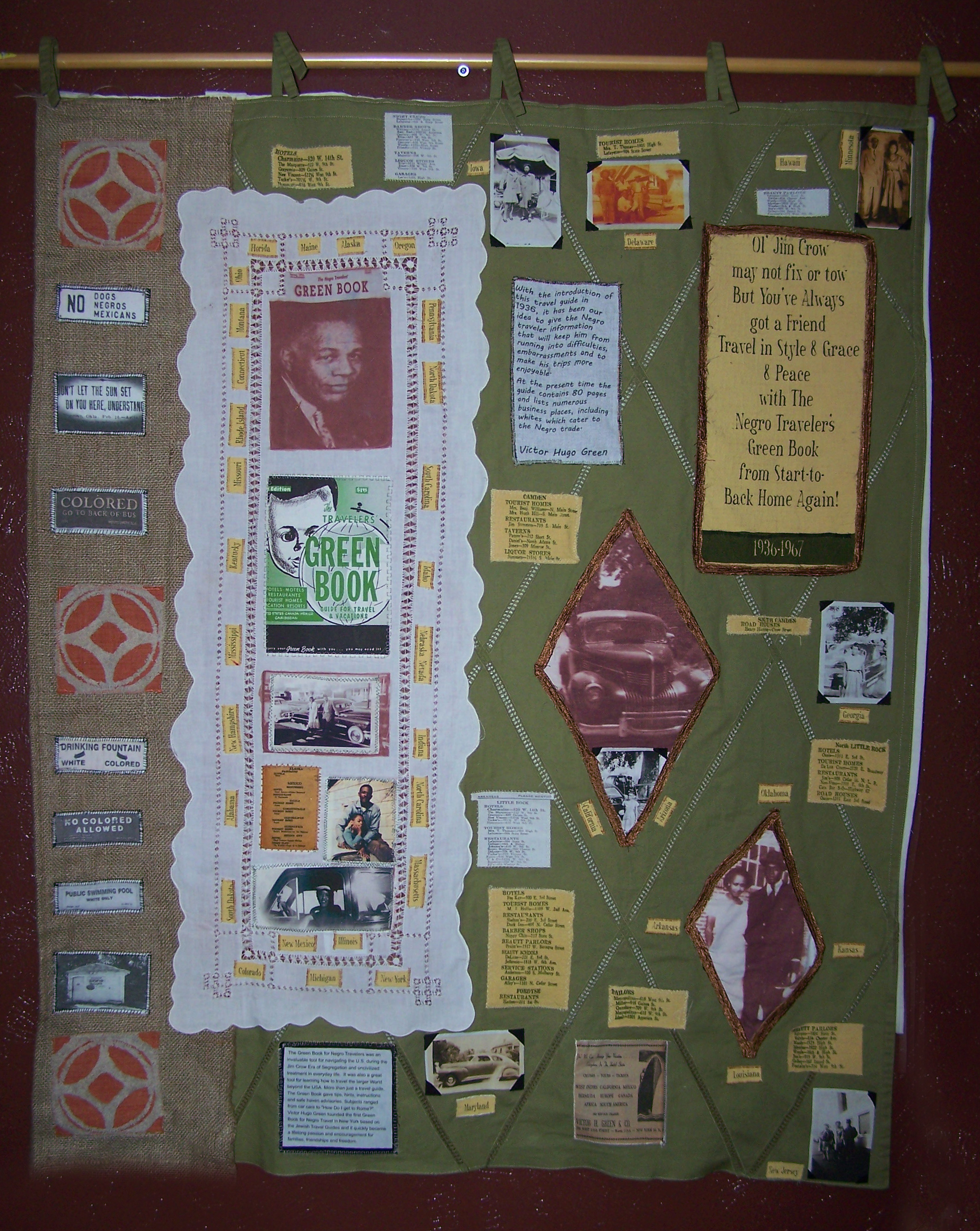 The recent movie brought forth many discussions about the legendary travel guide for African Americans. For my fabric art piece I used the approach of discovery and memory as my focus.