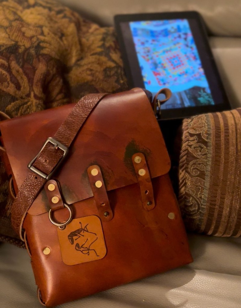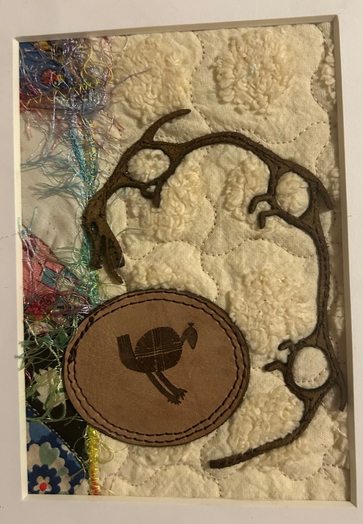 “Angels On the Move”. 11”x14” Fabric Art, Leather and Image Printing $600