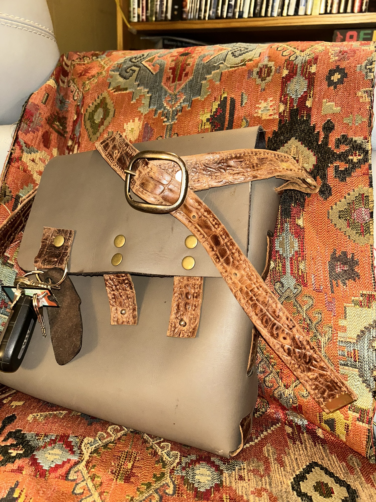 Utility Satchel Green and crocodile 10”x12”x3” $125