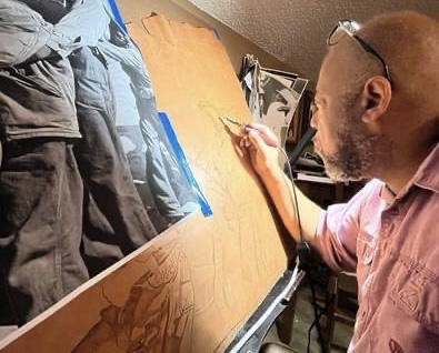Jas Mardis is an award winning Writer and Multidisciplinary Visual Artist. Mardis works with leather pyrography portraiture, fabric art quilt making and digital prints. Mardis is an inductee to the Texas Literary Hall of Fame and GRIOT Awards winner from The National Association of Black Journalist. He has also been awarded the Pushcart Prize for poetry and was selected Editor of “KenteCloth: Southwest Voices of the African Diaspora” for the University of North Texas Press/Center for Texas Studies. Jas Mardis fabric art and portraiture has appeared in various exhibitions, both locally, statewide, nationally and abroad. In 2018, Mardis was selected as one of twelve Quilters for, “A Response to Gees Bend” by Swarthmore College.